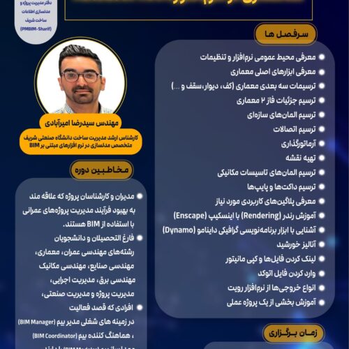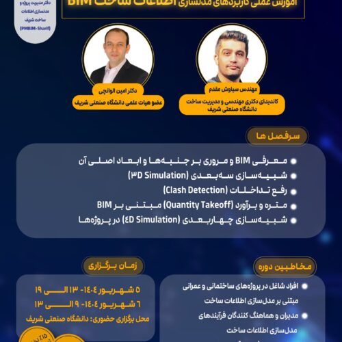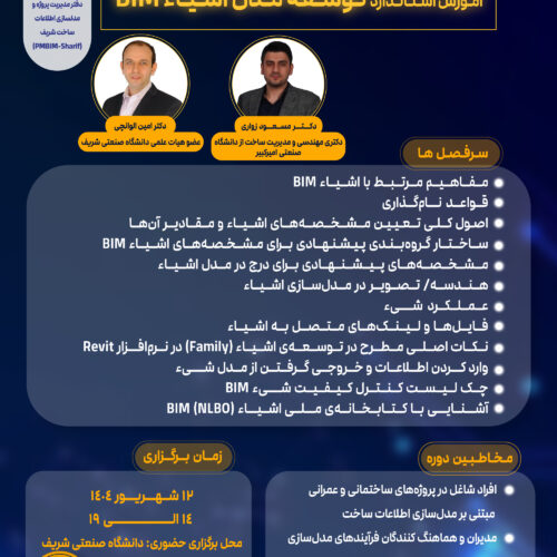 به صورت عمومی PMBIM امکان برگزاری دوره‌های آموزشی را در حوزه‌های مختلف مدیریت پروژه و مدلسازی اطلاعات ساخت مطابق با درخواست متقاضیان برگزاری دوره‌های آموزشی دارد. اما، در حال حاضر دوره‌های آموزشی ذیل به صورت اختصاصی توسط همکاران PMBIM تهیه شده است. به مرور، زمان‌های ارائه این دوره‌های آموزشی از طریق وبسایت رسمی PMBIM و مدیریت آموزش‌های تخصصی دانشگاه صنعتی شریف به اطلاع علاقه‌مندان خواهد رسید.