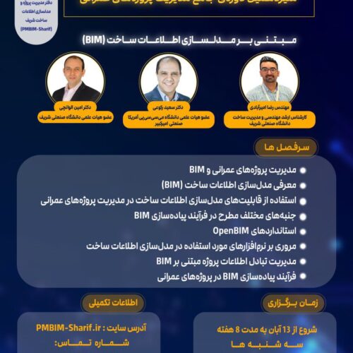 برگزاری دوره‌های آموزشی به منظور گسترش مبانی و مفاهیم علمی-کاربردی مطرح در مدیریت پروژه‌های عمرانی و مدلسازی اطلاعات ساخت در صنعت ساخت و ساز کشور یکی از فعالیت‌های مهمی است که در PMBIM دنبال می‌شود. PMBIM با اتصال به بنده دانشگاه صنعتی شریف به مجموعه‌ای از برجسته‌ترین اساتید حوزه‌های مختلف مطرح در صنعت ساخت و ساز دسترسی دارد. در برگزاری دوره‌های آموزشی، PMBIM همکاری نزدیک با مدیریت آموزش‌های تخصصی دانشگاه صنعتی شریف دارد و دوره‌های آموزشی خود را تحت نظارت این مدیریت دانشگاه برگزار می‌نماید و برای شرکت‌ کنندگان در این دوره‌های آموزشی مدرک آموزش‌های تخصصی دانشگاه صنعتی شریف صادر می‌شود. با توجه به برگزاری دوره‌های آموزشی تحت مدیریت آموزش‌های تخصصی دانشگاه صنعتی شریف، PMBIM امکان دسترسی به مجموعه امکانات آموزشی دانشگاه صنعتی شریف و زیرساخت‌های مجازی قوی مورد استفاده در این دانشگاه را نیز دارد. البته، در صورت تمایل متقاضیان برگزاری دوره‌های آموزشی به برگزاری کارگاه‌های آموزشی در محل سازمان‌ها و شرکت‌های متبوع، این امکان نیز وجود دارد. یکی از اهداف PMBIM آشنا ساختن مدیران و کارشناسان فعال در صنعت ساخت و ساز با آخرین دستاوردهای مطرح در مدیریت پروژه‌های عمرانی و مدلسازی اطلاعات ساخت است. به همین منظور PMBIM همواره در طراحی دوره‌های خود سعی می‌کند که علاوه بر مبانی و مفاهیم اصلی مطرح در حوزه‌ای که آموزش داده می‌شود، آخرین دستاوردهای این حوزه نیز ارائه شود. با توجه به فعالیت PMBIM در ارائه خدمات مشاوره در حوزه‌های مدیریت پروژه و مدلسازی اطلاعات ساخت، معمولا در روند برگزاری دوره‌های آموزشی مثال‌های عملی تجربه شده توسط همکاران PMBIM نیز ارائه می‌شود تا شرکت‌ کنندگان در دوره‌های آموزشی بهتر با مسائل علمی مطرح شده آشنا شوند.